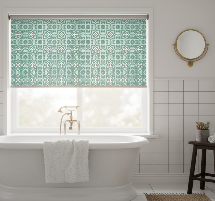 Sininen rullaverho marokkolaiskuviolla