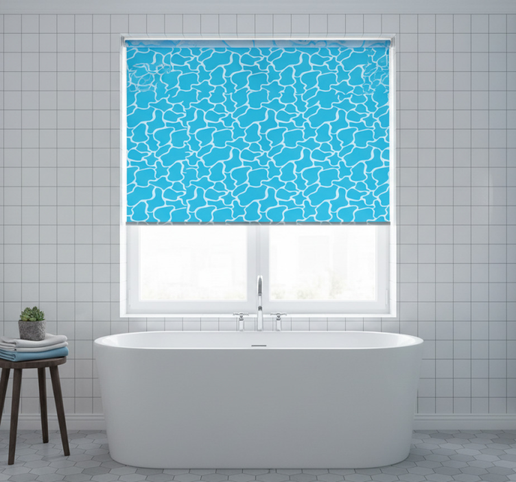 Sininen rullaverho nesteen kaltaiset abstraktit kuviot
