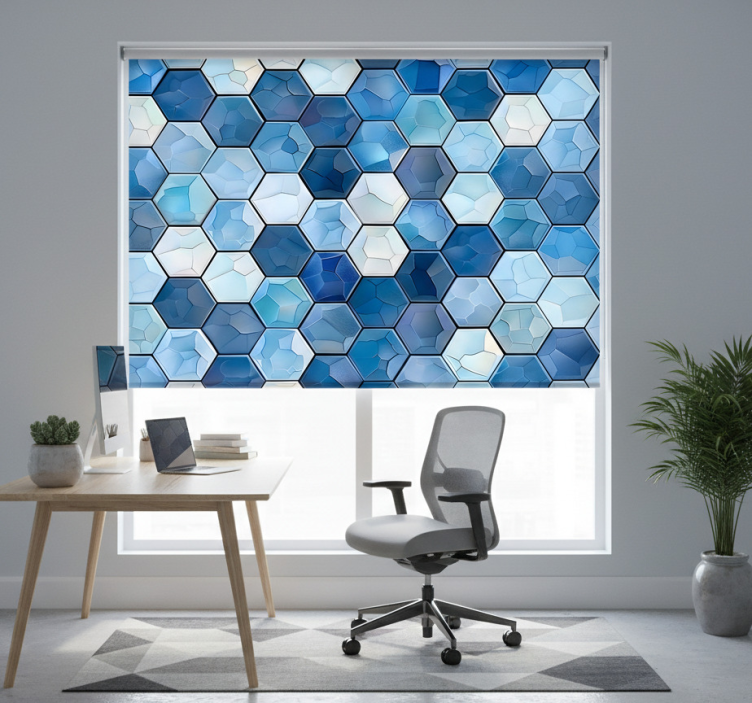 Sinisten laattojen vaikutus toimiston rullaverho