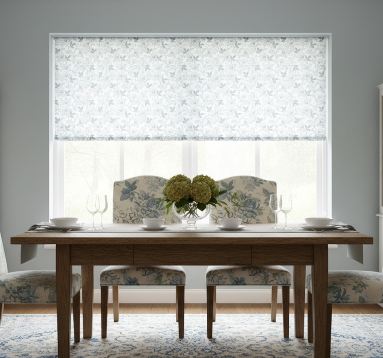 Kukkateemainen grandmillenial-ruokasalinrullaverho