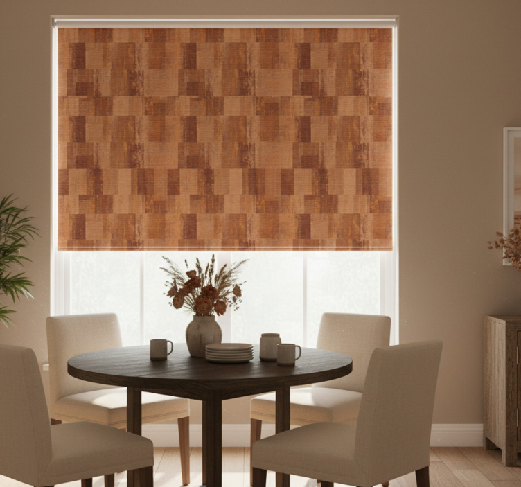 Terrakottalaattakuviollinen ruokasalin rullaverho