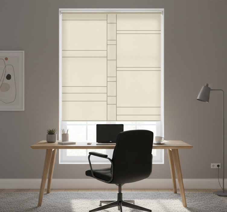 Toimiston rullaverho minimalistisella linjamuotoilulla