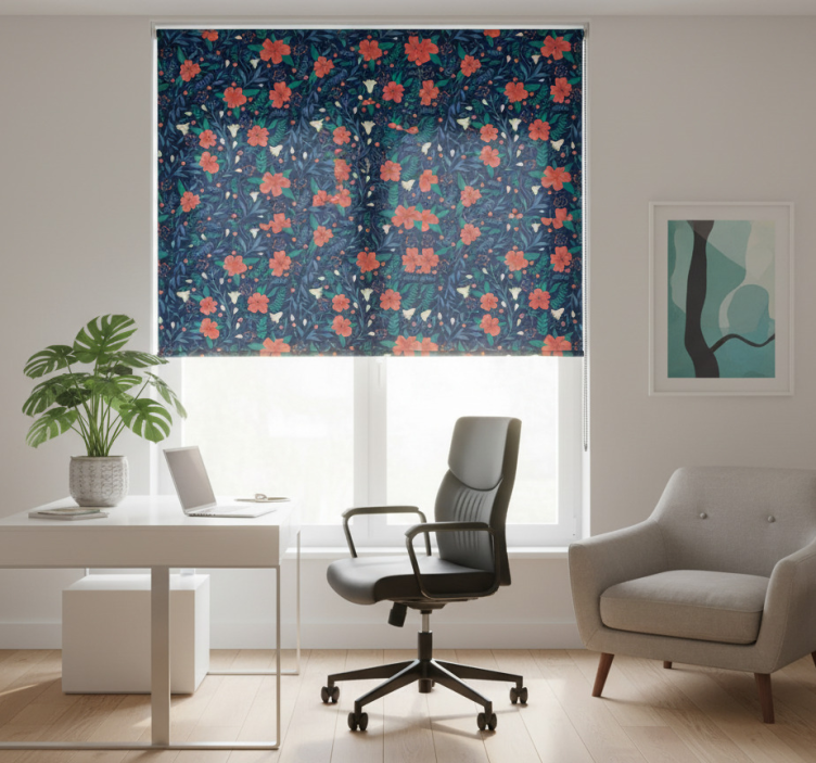 Toimiston rullaverho pohjoismaiset taiteelliset kukat