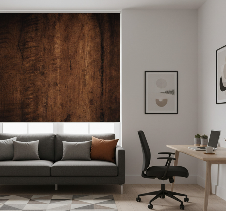 Toimiston rullaverho tumman puun tekstuurilla