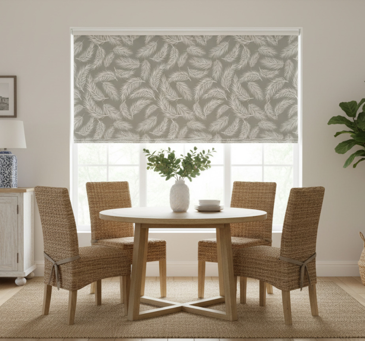Trooppinen beige hamptons-kuvio ruokasalin rullaverho