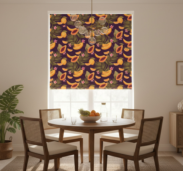 Tropiikin hedelmäkuvio ruokasalin rullaverho
