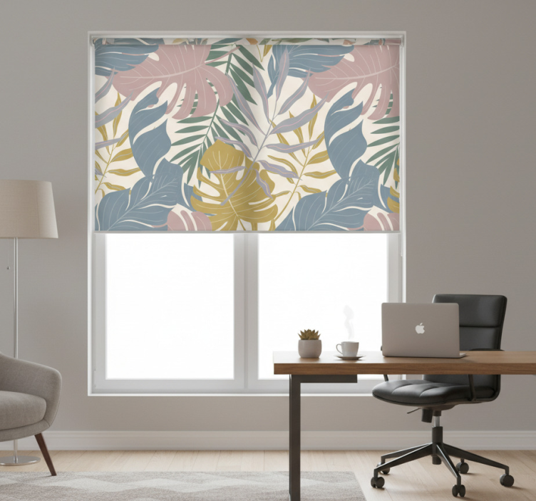 Tropiikin lehtikuvioinen toimiston rullaverho
