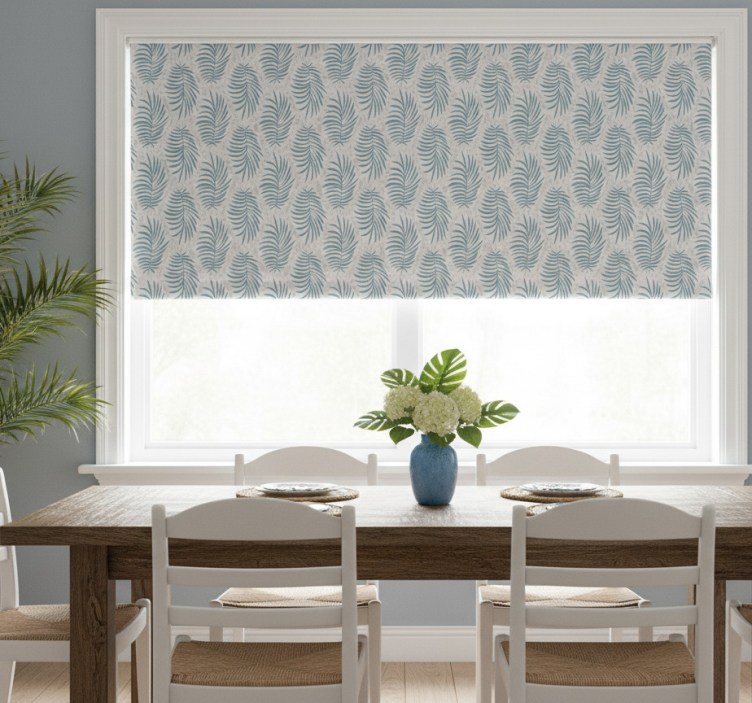 Tropiikin sininen hamptons-kuosi ruokasalin rullaverho