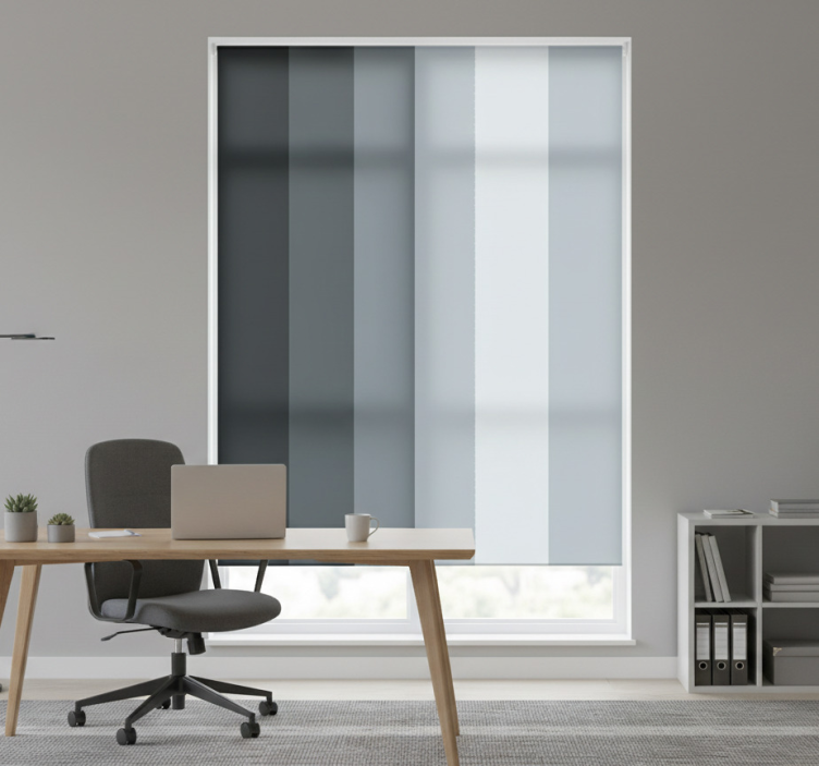 Tyylikkäät pystysuorat harmaat raidat toimiston rullaverho