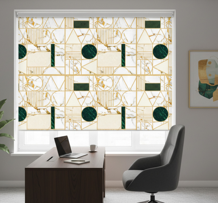 Valkoinen marmorigeometrinen toimiston rullaverho