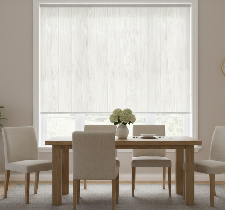Valkoinen puu ruokasalin rullaverho on loistava valinta, jos haluat luoda kauniin ja viihtyisän ympäristön ruokasaliisi. Tämä ruokasalin rullaverho tarjoaa erinomaisen yhdistelmän tyyliä ja toimivuutta. Sen avulla voit muuttaa huoneen tunnelmaa hetkessä! Rullaverho suojaa tehokkaasti suoralta auringonvalolta ja mahdollistaa samalla yksityisyyden säilyttämisen. Voit nauttia aterioista rauhassa, ilman häiriötekijöitä! Lisäksi saatavilla olevat kolme eri tekstuuria auttavat sinua valitsemaan juuri oikean määrän valoa ja yksityisyyttä. Tämä tekee siitä täydellisen valinnan, joka vastaa kaikkia tarpeitasi!