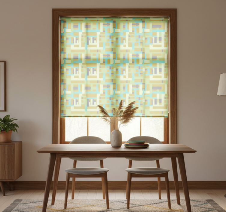 Värikäs retro suorakulmio-kuvio ruokasalin rullaverho
