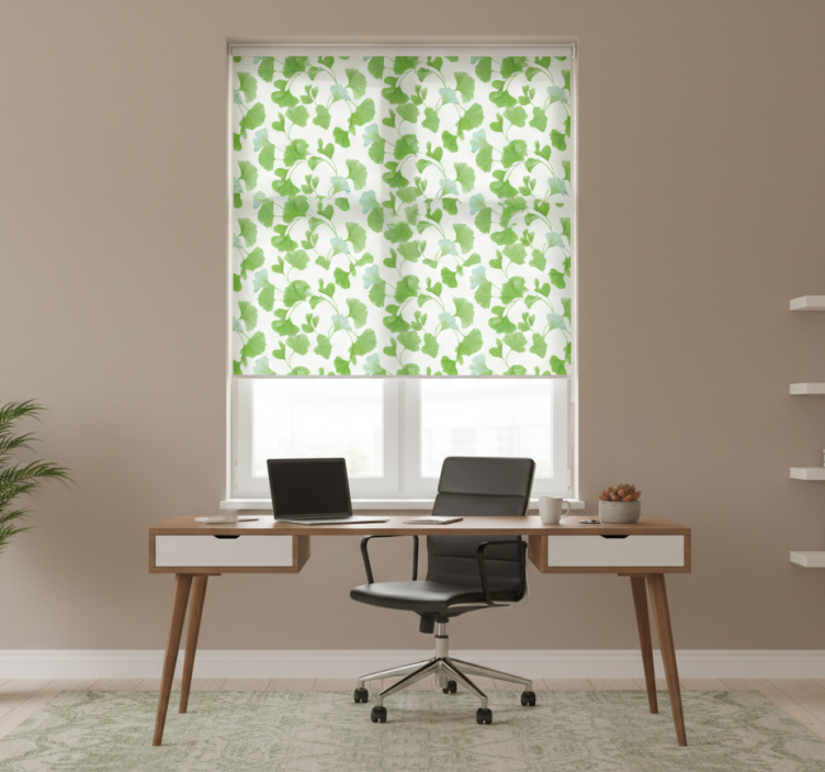 Vihreät ginkgo-lehdet toimiston rullaverho