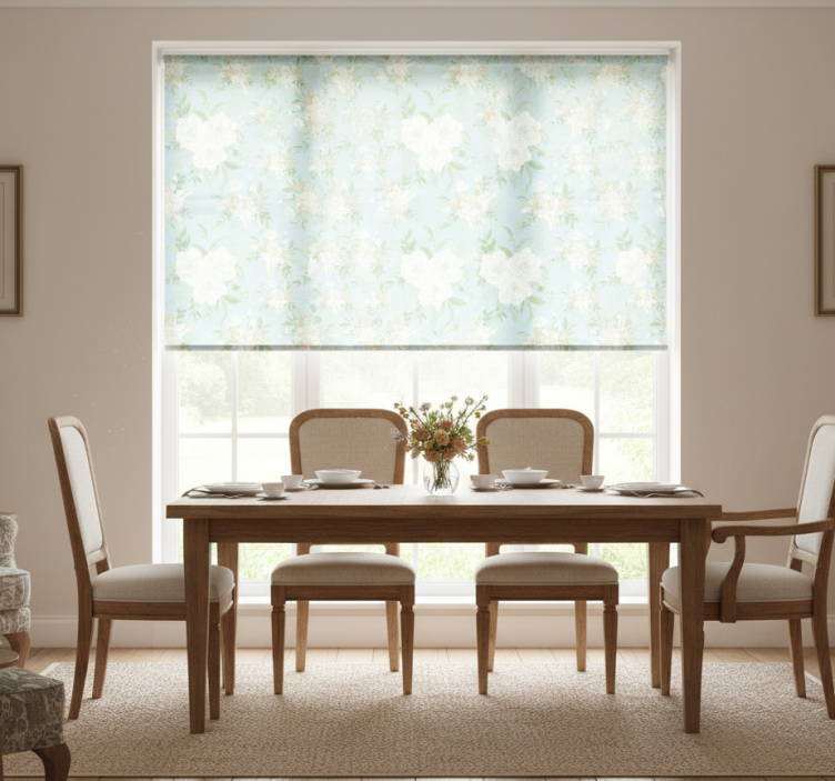 Villikukkainen grandmillenial-tyylinen ruokasalin rullaverho