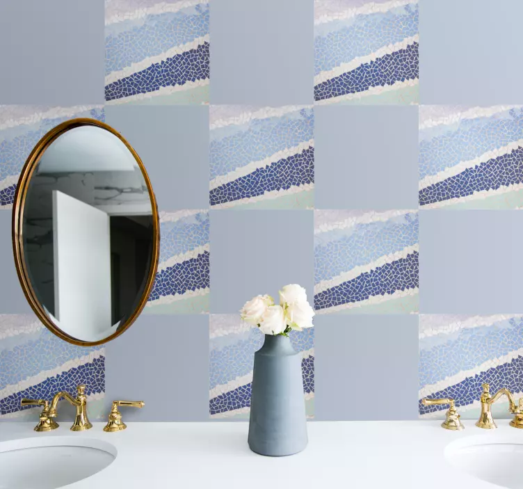 Abstrakti kuvioitu mosaiikki sijaintitarra on täydellinen valinta, jos haluat lisätä sisustukseesi ainutlaatuista graafista ilmettä! Sen siniset sävyt yhdistyvät kauniisti geometrisiin kuvioihin ja aaltoihin, luoden harmonisen ja rauhoittavan tunnelman. Tämä mosaiikkityylinen suunnittelu vie katseen ja antaa tilalle uuden elämän!