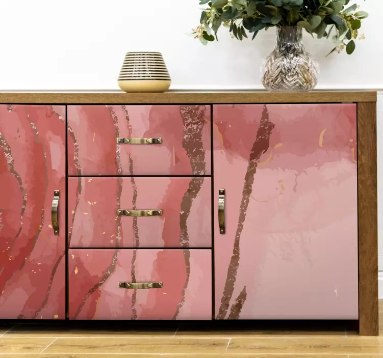 Abstraktitvaaleanpunaisetmotiivithuonekalutarra on taiteellinen ja moderni lisäys mihin tahansa tilaan! Sen vaaleanpunaiset sävyt yhdistyvät hienovaraisesti marmorin ja vesiväri tyyliin, luoden abstraktin ja elegantin ilmeen. Tämä huonekalutarra tuo sisustukseen raikkautta ja persoonallisuutta, ollen samalla helppo tapa päivittää tilan tyyli ilman suuria muutostöitä!