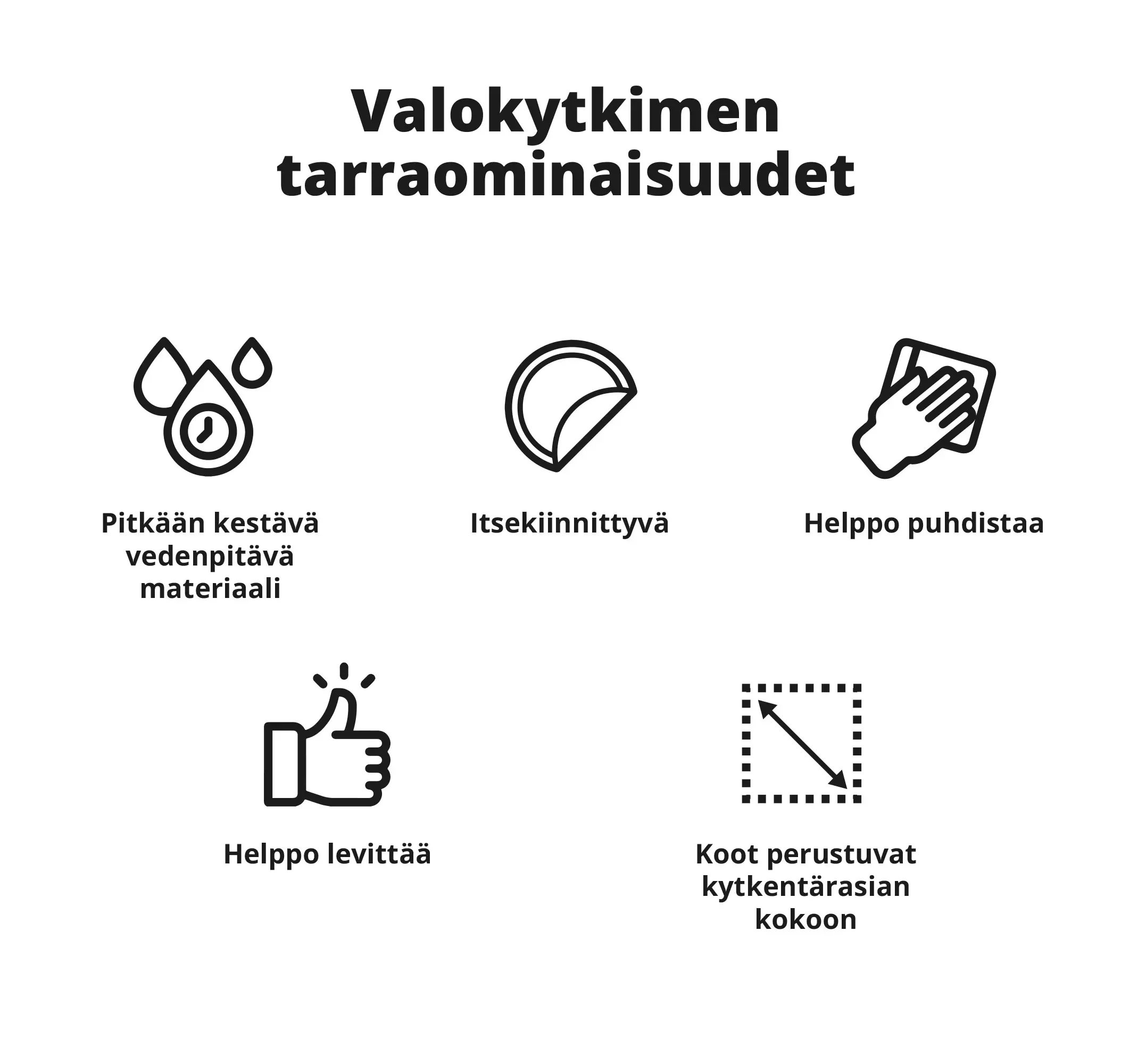 Tenstickersin myymät tarrat sopivat kaikkiin tasaisiin, ei-teräviin pintoihin. Jos pintasi on erilainen, ota yhteyttä info@tenstickers.fi löytääksesi ratkaisun.