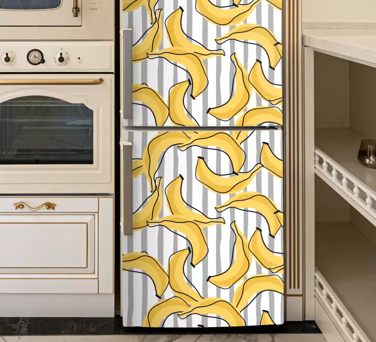 Banaanikuosiset jääkaappitarra on täydellinen valinta, kun haluat lisätä keittiösi ilmeeseen persoonallisuutta ja iloa! Tämä jääkaappitarra ei ainoastaan kaunista jääkaappiasi, vaan se myös inspiroi ja piristää päivittäistä elämääsi. Kuviointi tuo mieleen kesän hedelmät ja saa sinut tuntemaan olosi energiseksi ja onnelliseksi. Anna banaanien ja värikkään graafisen ilmeen viedä sinut hetkeksi pois arjen kiireistä ja luoda ympärillesi iloista tunnelmaa!
