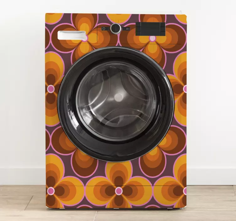 Esittelyssä Dinosaurus tarra retro kukkakuviolla, joka tuo kodinkoneesi eloon! Tämä graafisesti rohkea muotoilu yhdistää eloisia värejä ja geometrisia kukkia, luoden psykedeelisen tyylin joka vangitsee katseen. Abstrakteja kuvioita ja groovy elementtejä antavat tälle tarralle erityisen ilmeen, joka tuo iloa ja väriä keittiöön tai muuhun sisustukseen.