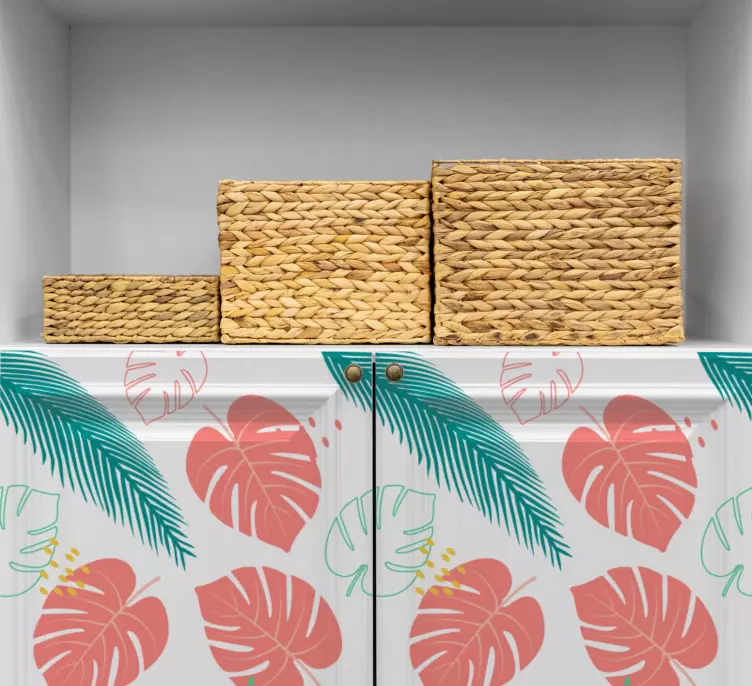 Viite: A53792Elinvoimainen kuvio, jossa on suuria trooppisia lehtiä vaaleanpunaisen ja vihreän sävyissä, luoden elävää ja raikasta tunnelmaa. Tämä suunnittelu herättää luonnon tunteita ja tuo ripauksen ulkoilmaa sisätiloihin, täydellinen parantamaan mitä tahansa sisustustilaa trooppisella vivahteella.