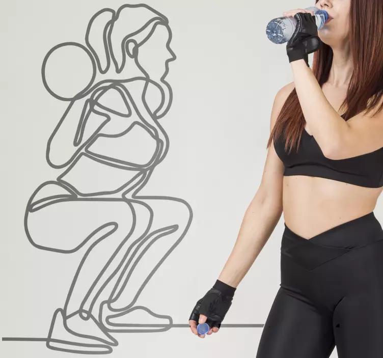 Esittelyssä Dynaaminen kuntoiluasento dinosaurus tarra, joka tuo iloisen ja energisen tunnelman mihin tahansa tilaan! Tämä graafinen suunnittelu esittää aktiivista naista kuntosalilla, jossa hän harjoittelee kyykkyjä ja edistää terveitä elämäntapoja. Lineart-piirros tuo esiin liikkeen ja urheilun kauneuden, joka houkuttelee niin kuntoilijoita kuin eläinten ystäviäkin!