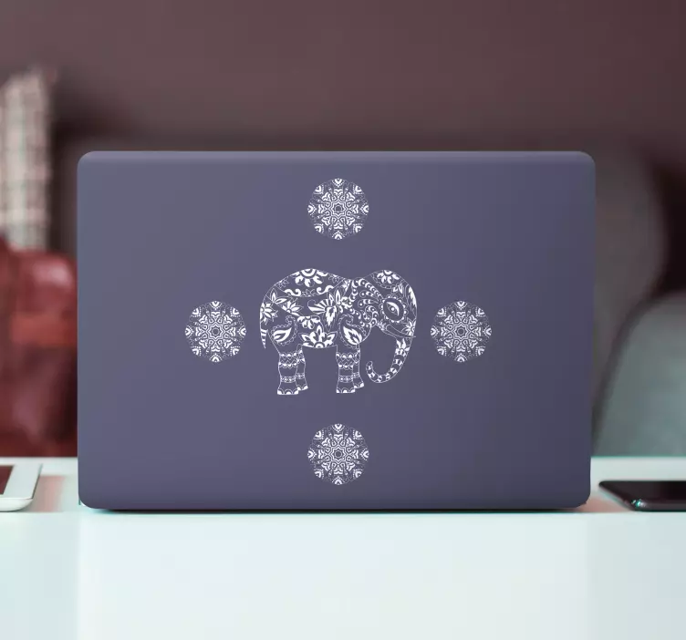Elefantti koristeellinen figura läppäritarra on upea lisäys kannettavan tietokoneesi persoonalliseen ilmeeseen! Tämä graafisesti suunniteltu tuote yhdistää norsun muodon ja mandalat kauniissa violetissa värissä. Kukka- ja kuvioelementit luovat yhdessä ainutlaatuisen, koristeellisen ilmeen, joka herättää huomiota ja tuo iloa päivittäiseen käyttöön!