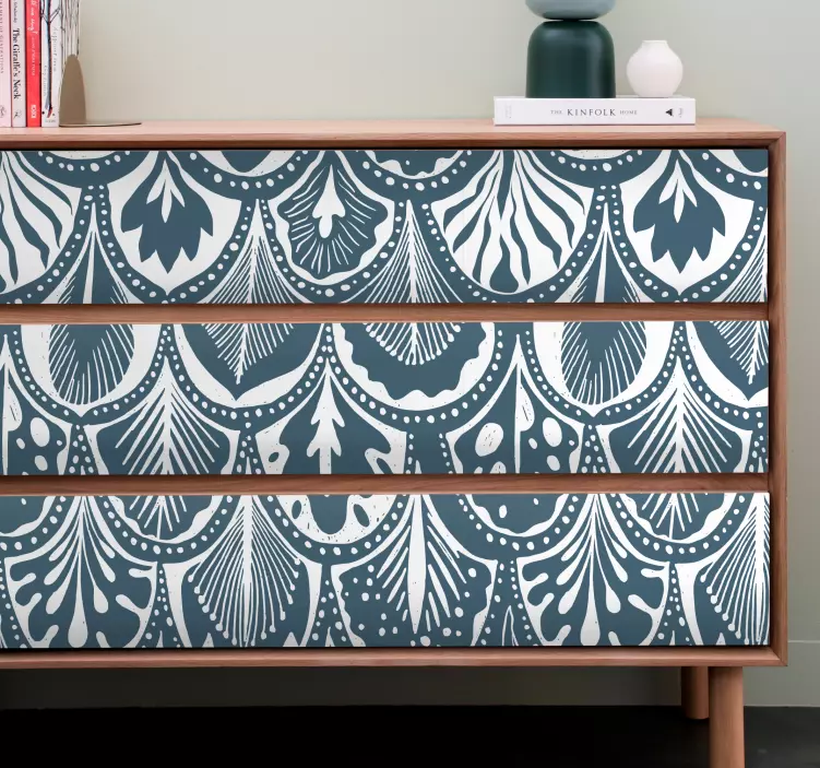 Kukkakuosiset dinosaurus tarrat viehättävät graafisella suunnittelullaan, jossa yhdistyvät kalan suomu, sininen sävy, kukkakuvio ja koristeelliset yksityiskohdat. Nämä tarrat tuovat huonekaluihin ja sisustukseen piristystä ja iloa, luoden samalla mielenkiintoisen rakenteen tilaan!