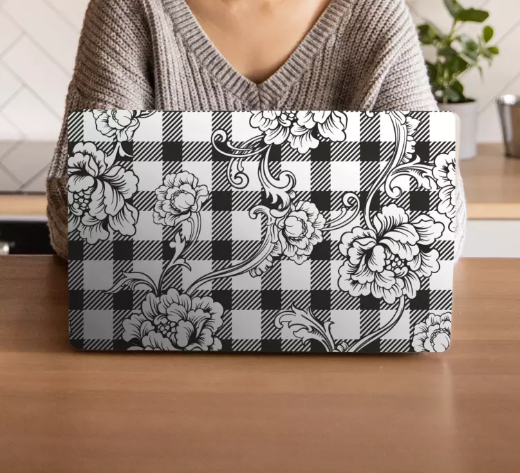 Kukkakuvioinen ruutuläppäritarra on visuaalisesti kiehtova tuote, joka yhdistää kukkakuvion ja ruudullisen rakenteen ainutlaatuisella tavalla. Tämä koristeltava läppäritarra tuo kannettavaan tietokoneeseen raikkautta ja tyylikkyyttä. Mustavalkoinen väri tekee siitä ajattoman valinnan, joka sopii monenlaisiin ympäristöihin!