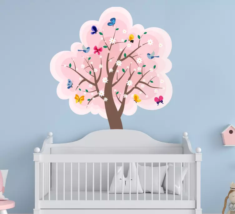 Esittelyssä Kukoistava puuaiheinen seinätarra, joka tuo keväisen luonnon kauneuden kotiisi! Tämä värikäs suunnittelu yhdistää puut, kukat ja perhoset, luoden harmonisen ja iloisen tunnelman. Vaaleanpunaiset sävyt tuovat mukanaan raikkautta ja eloa, ja tämä kuva vie sinut suoraan kauniiseen luontoon. Anna seinillesi uusi elämä ja nauti luontoaiheisesta seinätarrasta, joka inspiroi jokaista katsojaa!