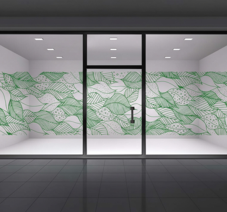 Läpinäkyvät yksityiskohtaiset vihreät lehdet ikkuna-tarra