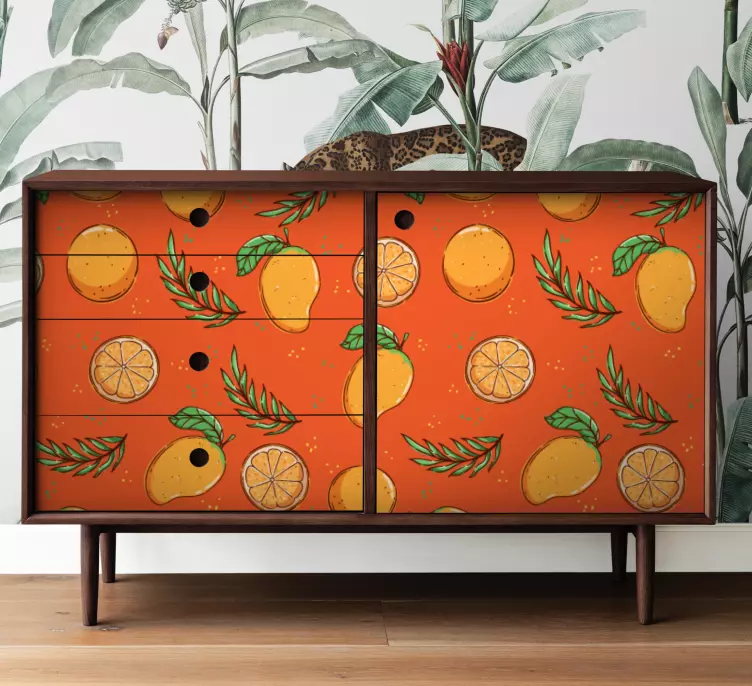 Viite: A30696Lehdet oranssilla hedelmillä huonekalutarra
