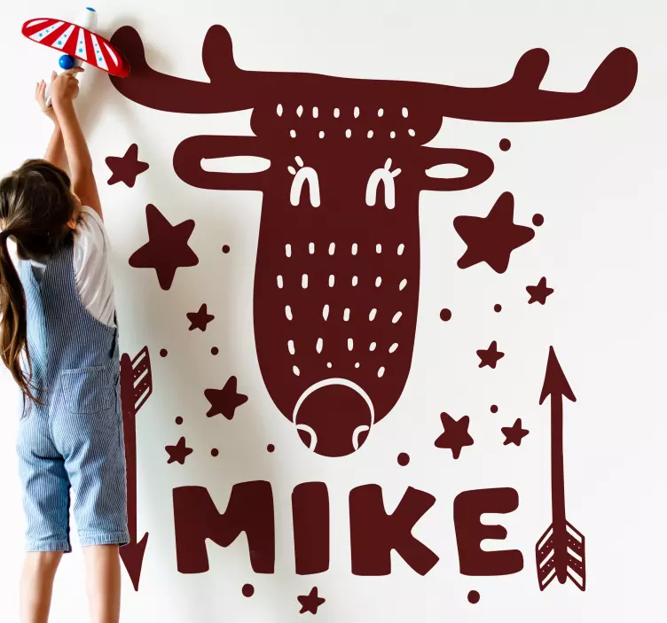 Viite: A47846Ihana kuvaus peuran kasvoista, joita koristavat leikkisät tähdet ja nuolet, luoden hauskan tunnelman, joka sopii täydellisesti lasten tiloihin. Tämä muokattava teos mahdollistaa henkilökohtaiset lisäykset, tehden siitä ainutlaatuisen lisän mihin tahansa huoneeseen.