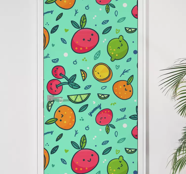 Leikkisät hedelmäkuviotovitarra on täydellinen valinta, jos haluat tuoda kotiisi väriä ja iloa! Tämä tarralevy on suunniteltu graafisesti kiehtovaksi, ja siinä yhdistyvät söpöt hedelmäkuvat, leikkisä tyyli sekä luonnon inspiroima ilme. Värikäs ja hauska ovi-idea tuo arkeesi ripauksen leikkisyyttä ja tekee ovistasi huomionarvoisia. Anna oven olla enemmän kuin vain kulkuväylä, tee siitä taideteos!