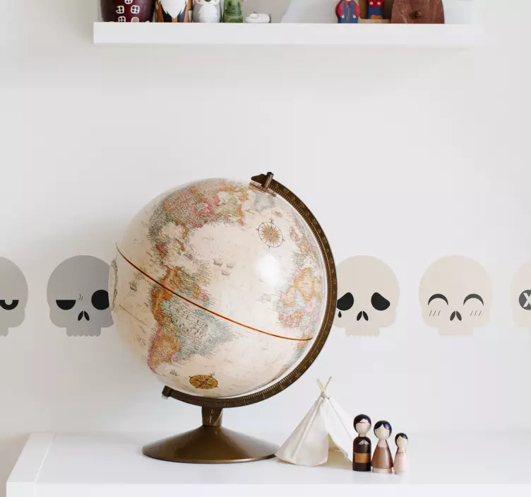 Leikkisät pääkallot ja hahmot sisustustarrat
