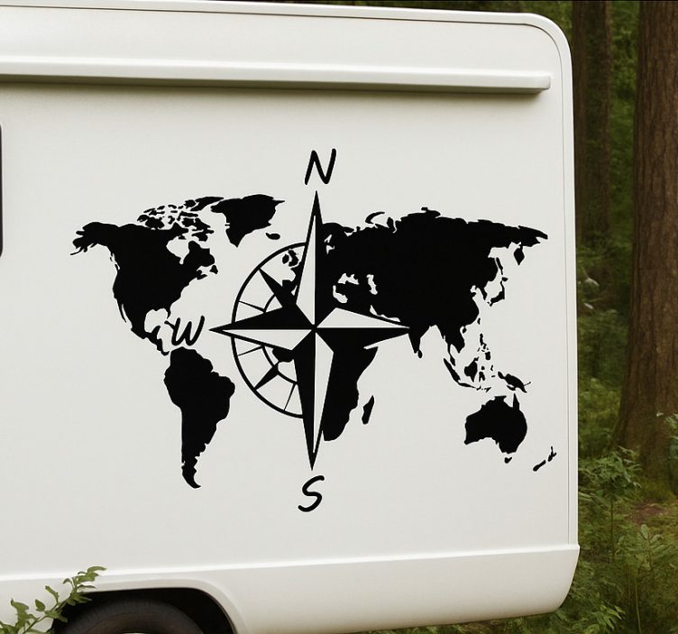 Maailmankartta kompassilla asuntovaunu tarra asuntovaunu tarra on saatavilla vain verkkokaupassamme, mikä takaa kilpailukykyiset hinnat ja erinomaisen laadun. Valmistamme sen tilauksesta, joten voit valita juuri sinulle sopivan koon. Tämä tarra on täydellinen myös muille tasaisille alustoille, joten voit käyttää sitä monipuolisesti!