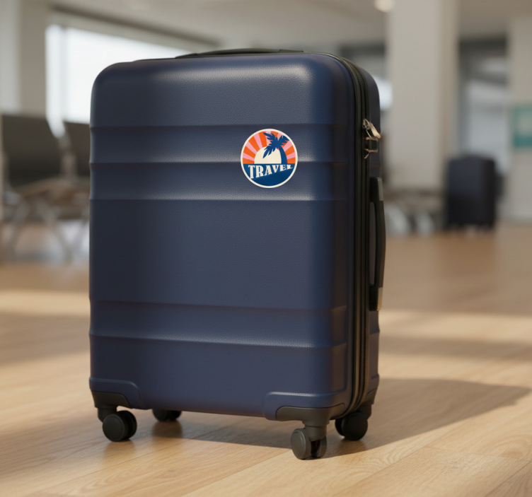 Viite: A53981Kestävä matkalaukku, jossa on eläväinen muotoilu, joka inspiroi matkakuumetta. Pyöreä grafiikka luo trooppista tunnelmaa palmun siluetilla, taustanaan auringonnousu. Lainaus 'TRAVEL' herättää seikkailun ja tutkimusmatkailun henkeä, kannustaen matkoihin uusiin kohteisiin.