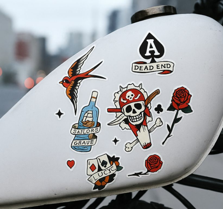 Valitsemalla moottoripyörä tarran polttoainesäiliö tattoo moottoripyörä tarra saat lisättyä persoonallisuutta ja tyyliä moottoripyörääsi. Tämä tuote ei ainoastaan paranna ajoneuvosi ulkonäköä, vaan se myös suojaa pintaa naarmuilta ja muilta vaurioilta. Moottoripyörätarramme on suunniteltu kestämään vaihtelevaa säätä ja ympäristöolosuhteita, joten voit luottaa siihen, että se pysyy kauniina ja toimivana pitkään. Tämä on täydellinen tapa tehdä moottoripyörästäsi ainutlaatuinen ja erottuva!