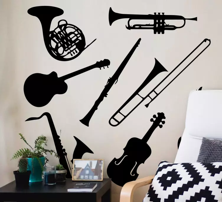 Esittelemme Musiikki seinätarra soitinkokoelma -tuotteen, joka on täydellinen valinta musiikin ystäville! Tämä graafisesti upea suunnittelu yhdistää orkesterin ja musiikin maailmat, luoden musiikkia ja musikaalia henkivän sisustuselementin. Siluetteihin perustuva taide herättää eloon soittimia ja tuo iloa jokaiseen tilaan. Tämä tuote on enemmän kuin pelkkä sisustus; se on oodi musiikille!