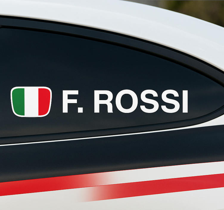 Nimi suunnittelu italian lipulla auto seinätarra auto seinätarra on täydellinen valinta, jos haluat antaa autollesi persoonallista ilmettä. Tämä tarrasuunnittelu on inspiroiva ja tuo esiin Italian kulttuurin kauneuden. Se ei ainoastaan koristele autoasi, vaan myös herättää huomiota ja kiinnostusta. Laadukkaasta materiaalista valmistettu tarramme on kestävä ja pitkäikäinen, joten voit nauttia sen kauneudesta vuosia!
