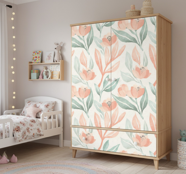 Viite: A54882Kauniisti suunniteltu kaappi esittelee kukkakuviota, jossa on elegantteja lehtiä ja kukkia, luoden rauhallisen tunnelman, joka sopii lastenhuoneeseen. Kukkien symboliikka edustaa kasvua ja viattomuutta, tehden tästä kappaleesta viehättävän lisän mihin tahansa vauvanhuoneeseen tai leikkitilaan.