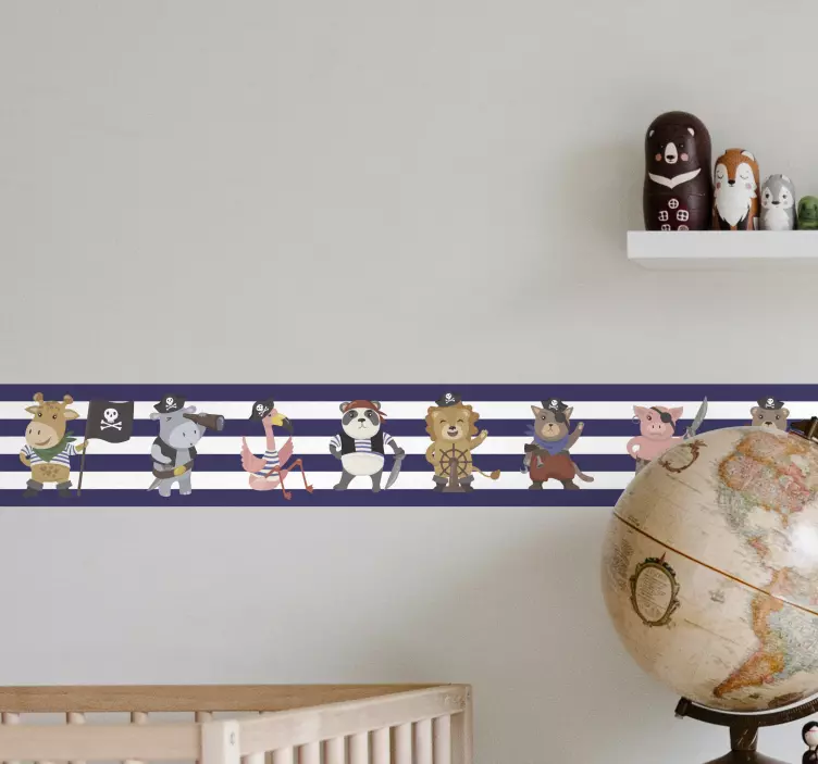 Viite: A47219Värikäs kokoelma merirosvoteemaisia eläinhahmoja, jotka esittävät leikkisiä asentoja. Jokaisella eläimellä on päällään erilaisia merirosvoasusteita, mikä luo viehättävän ja seikkailunhaluisen tunnelman, joka sopii täydellisesti lasten tiloihin. Suunnittelussa on käytetty raitoja, jotka lisäävät tyylikkään merihenkisen elementin koko teemaan.