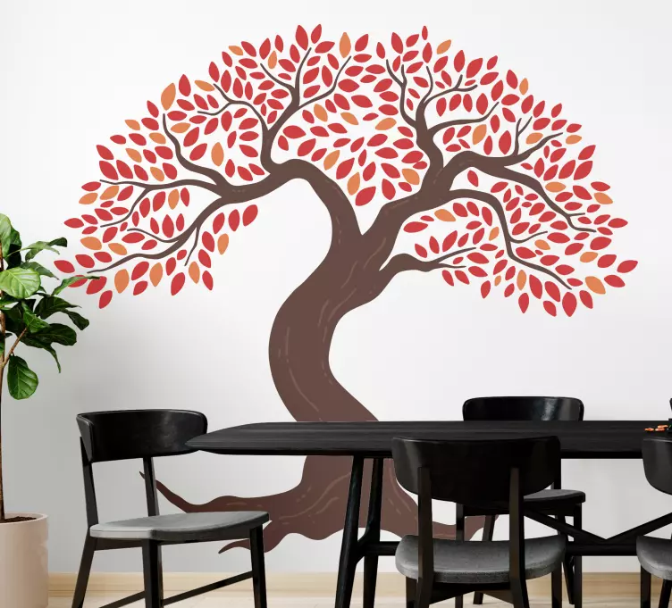 Puu punaisella lehdellä sisustustarroja makuuhuoneeseen