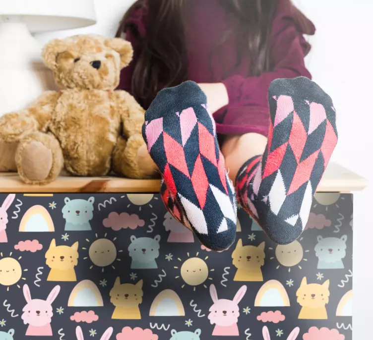 Viite: A51583Leikkisä muotoilu, jossa on erilaisia söpöjä eläinhahmoja, iloisia pilviä ja aurinkoja. Pastellivärien ja satumaisten elementtien yhdistelmä tekee siitä täydellisen valinnan lasten tiloihin, luoden iloisen ja kutsuvan ilmapiirin.