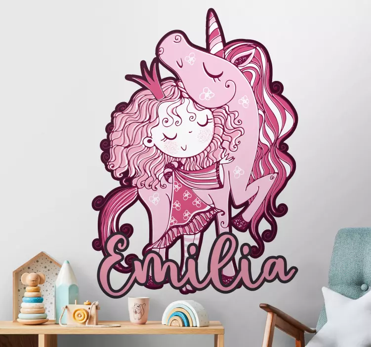 Vaaleanpunainen yksisarvinen halausseinätarra lastenhuone