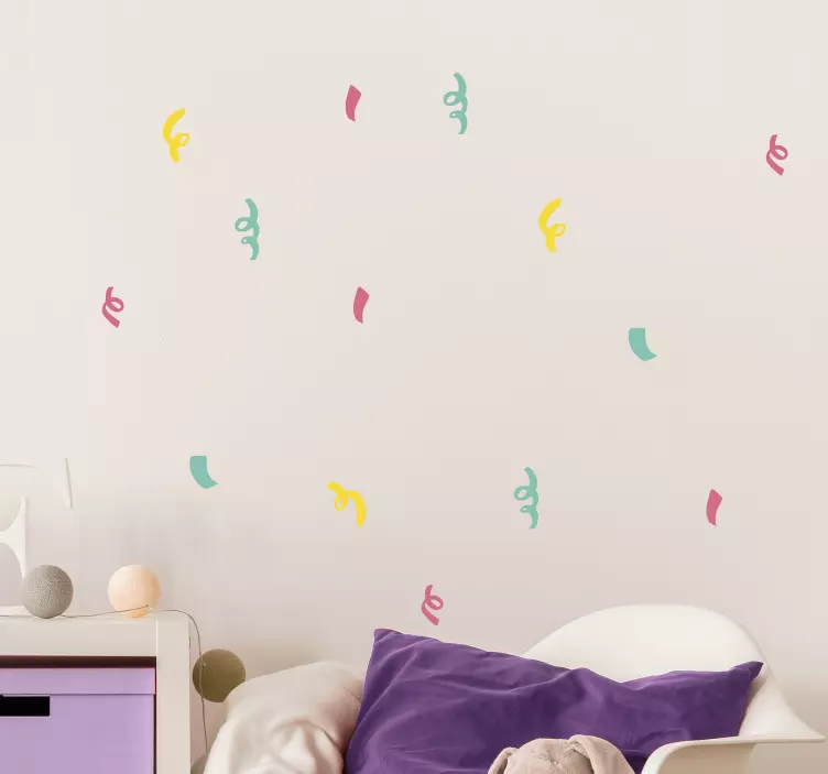 Värikkäät kaarevat muodot dinosaurus tarra on graafisesti leikittelevä tuote, joka tuo eloa mihin tahansa tilaan! Suunnittelussa on käytetty konfettia, asetuksia ja kierrettyjä muotoja, jotka yhdessä luovat koristeellisen ja värikkään ilmeen. Nämä käyrät ja leikkisät muodot ovat moderni lisäys, joka ilahduttaa niin lapsia kuin aikuisia!