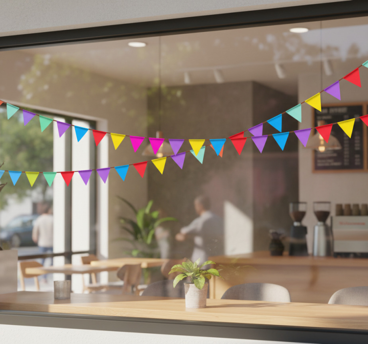 Viite: A53875Värikkäät karnevaalikoristeet näyteikkuna tarra on visuaalisesti upea tuote, joka tuo eloa ja väriä mihin tahansa tilaan! Suunnittelussa on käytetty graafisesti kiehtovia värejä ja kuoseja, jotka houkuttelevat katsojan huomion. Sen satiinipinnoite estää häikäisyä, mutta korostaa silti värin voimakkuutta. Tämä tuote on loistava valinta, kun haluat tehdä vaikutuksen asiakkaisiisi tai juhlavieraasiin.