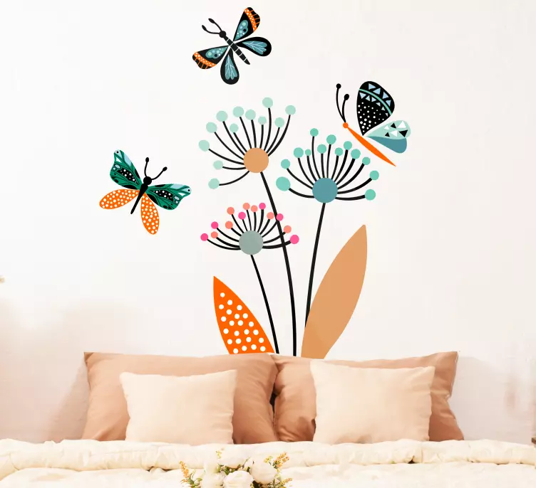 Värikkäät kukkakuosiset perhoset luontoaiheinen seinätarra