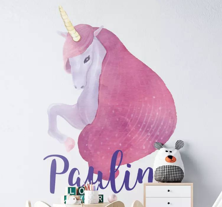 Yksisarvisten suunnittelutaideteosseinätarra lastenhuone tuo väriä ja leikkisyyttä lastenhuoneeseen! Tämä yksisarvinen seinätarra on suunniteltu erityisesti lapsille, ja sen vesivärityylinen ilme tekee siitä hauskan ja mukautettavan. Voit lisätä mukautetun nimen ja tehdä siitä vieläkin henkilökohtaisemman. Personoitavissa oleva design tuo iloa ja väriä huoneeseen, ja sen grafiikka on sekä värikäs että houkutteleva!