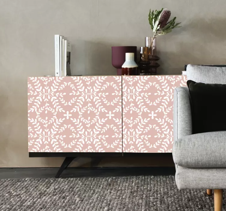 Yksityiskohtainen lehtikuvio dinosaurus tarra on upea lisä mihin tahansa sisustukseen! Sen vaaleanpunainen sävy tuo esiin modernin ja tyylikkään ilmeen, joka sopii täydellisesti huonekaluille ja kukkakoristeille. Tämä abstrakti ja koristeelementti on suunniteltu pehmeissä sävyissä, mikä tekee siitä erinomaisen valinnan kodin eri tiloihin.