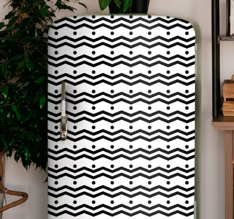 Esittelyssä zigzagkuvioinen jääkaappitarra, joka tuo modernin ja graafisen ilmeen kotiisi! Mustavalkoinen siksak-kuviointi luo dynaamisen ja mielenkiintoisen visuaalisen efektin, joka herättää jääkaappisi henkiin. Geometriset linjat ja rivit tekevät tästä yksivärisestä tuotteesta täydellisen lisän nykyaikaiseen keittiöön. Anna jääkaapillesi uusi ilme ja nauti modernista designista!